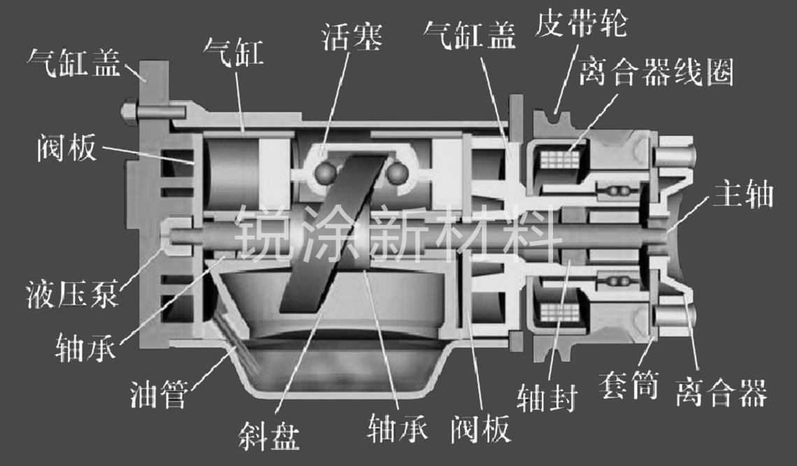 我司減摩涂層可應(yīng)用在汽車空調(diào)壓縮機(jī)中的活塞、斜盤等部件上。